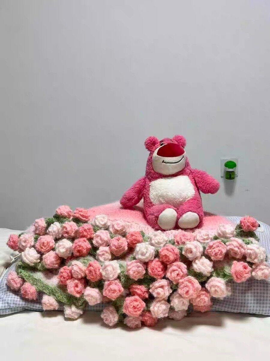 🌹 2-in-1 Design: Looks like a rose bouquet, unfolds into a large, round blanket.
